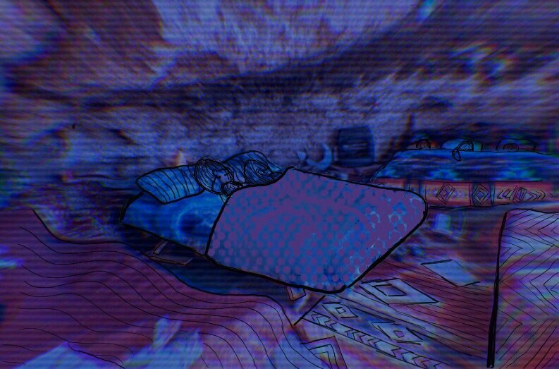 Their sleep was burdened by nightmares. Kamikaze dreamed that all the nuts in the world were empty inside and M.C. woke up scared, he dreamed that he was running and he was very tired. He thought fleetingly that maybe nobody was left alive and he might find an abandoned shop nearby to grab something sweet. The idea of eating a chocolate bar started to entertain him, but to see what lay beyond he had to pass through the grotto.