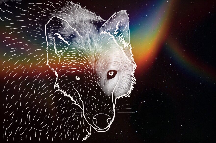 In the middle of the cave, he saw a white silhouette in the dark. He got closer. It seemed to be a large, grey dog burrowing through the ground. He got even closer. It didn’t look so much like a dog, as much as a wolf, but nothing was frightening about it. Kamikaze didn’t seem to fear it either.