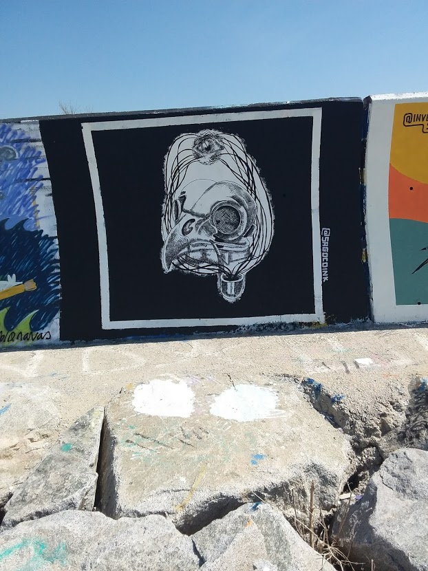 I have spend some time in front of the wall, art speaks to me. Here are some other works extracted from this mural project, the artists´s names and some titles I have made for their visual representations: